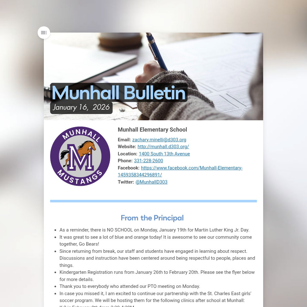 Due to severe weather, all D303 schools & offices will be closed on Friday, January 23. We will have an E-Learning Day. Please see your email for details.